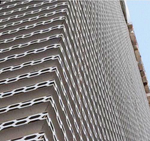 板面是規(guī)律排列的菱形孔,形狀如同長城。這種沖孔長城鋁單板是汽車4S店外墻裝飾指定使用的材料,因裝飾視覺效果好、防火、耐用性強及安裝方便等特點而被越來越多的建筑廣泛使用。
