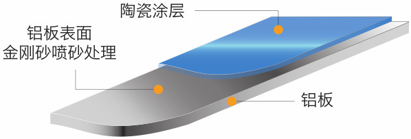 烤瓷鋁單板由鋁單板、噴砂表面處理層和一層無機涂膜層所組成,以高等級鋁合金為主要材料。烤瓷鋁單板表面涂層采用先進的陶瓷涂料系統(tǒng),是專為鋁板外表面開發(fā)的無機涂料,陶瓷涂料系統(tǒng)擁有優(yōu)秀耐久性能、抗化學(xué)腐蝕性能和良好硬度以及絕對優(yōu)異的防火、絕緣性能。可以長久地經(jīng)受日光曝曬、惡劣的天氣、酸雨、潮濕環(huán)境、汽車尾氣、工業(yè)污染物質(zhì)等的侵害,尤其表現(xiàn)出容易清潔的特性。