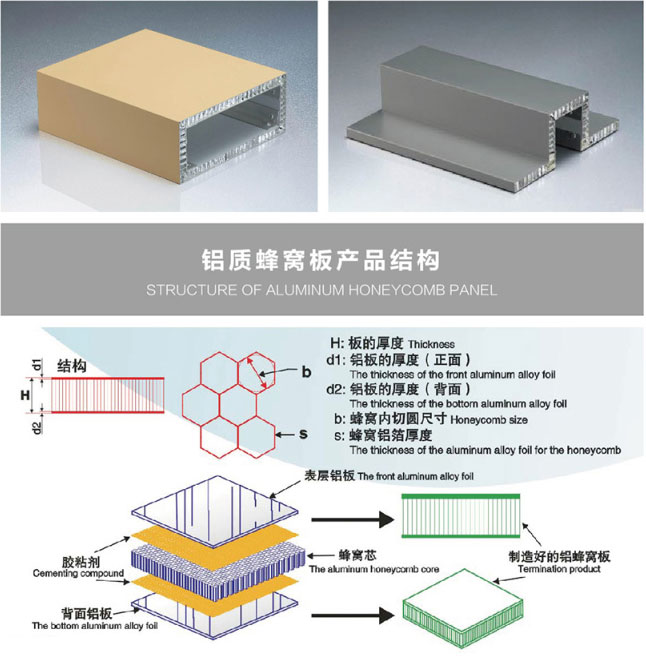 鋁蜂窩鋁單板是采用經(jīng)氟碳噴涂處理的耐候性極佳的高強度合金鋁板作為面、底板,中間是鋁蜂窩芯,經(jīng)高溫高壓復(fù)合而成的蜂窩式夾層結(jié)構(gòu)板材。具有質(zhì)輕、強度高、鋼性好、隔音、隔熱等特點。鋁蜂窩板是航空、航天材料,目前已逐步發(fā)展應(yīng)用于民用領(lǐng)域,如建筑業(yè)、交通工業(yè)、廣告牌等行業(yè)。本公司引進先進的全自動連續(xù)復(fù)合生產(chǎn)線,采用冷膠和熱復(fù)合相結(jié)合技術(shù),使產(chǎn)品達(dá)到先進水平,同時豐富多彩的造型板能充分實現(xiàn)建筑師完美的創(chuàng)意。