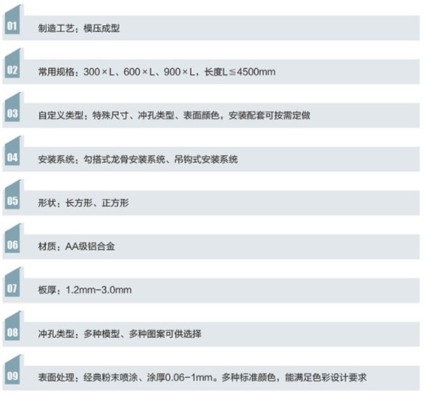 搭鋁單板天花板面平整,一般為單向平行龍骨勾搭式結(jié)構(gòu),板與板之間的拼接時通過龍骨有次序搭折在一起的,板邊獨(dú)特的勾搭設(shè)計(jì),能很好的控制板與板之間的活動性,從而確保了板與板之間的縫隙風(fēng)嚴(yán)密平整拼縫細(xì)密,棱線分明,不同寬度可實(shí)現(xiàn)多種組合。